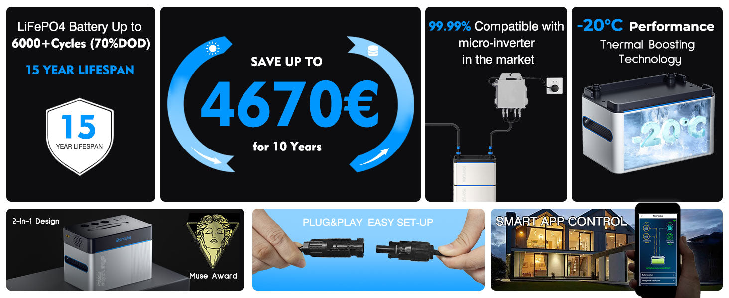 Storcube S1000 Pro Solar Speicherbatterie für Balkonkraftwerk-2048Wh